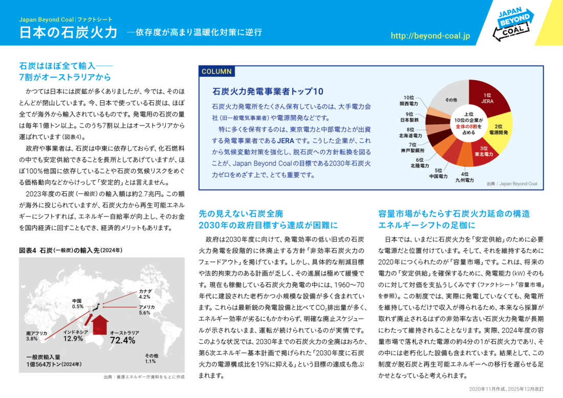 【ファクトシート】日本の石炭火力 ─依存度が高まり温暖化対策に逆行