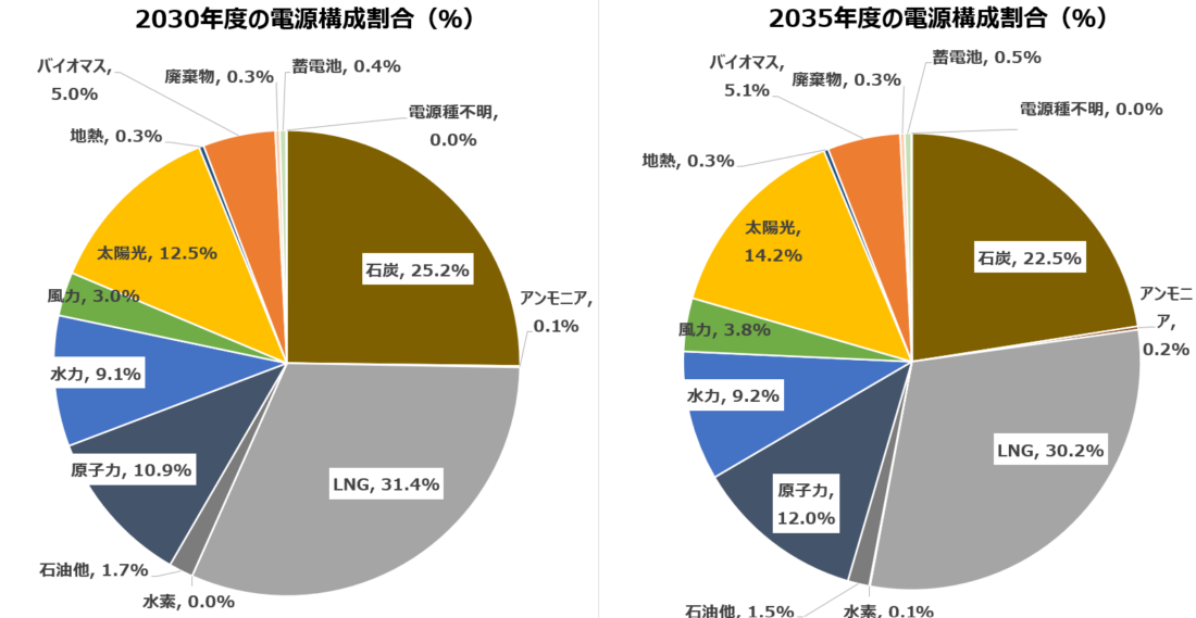 エネルギーミックスについては、化石燃料への深刻な依存が続く見込みであることが明らかになりました。(冒頭の2025年度実績、2026年度、2030年度と2035年度の予測グラフを参照)