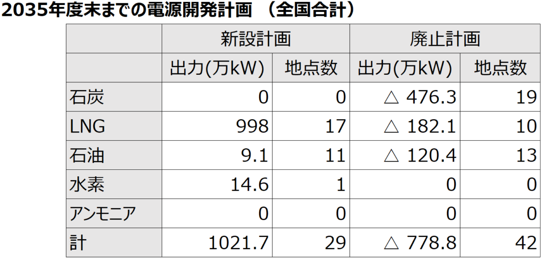 さらに火力発電の新設・廃止計画を見てみると、以下のようになっています。
